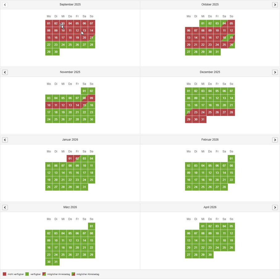 Stand: 03.09.2025, zwischenzeitliche Buchungen sind nicht berücksichtigt